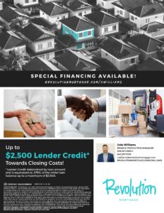 Real Estate Agents I am here to partner with you. Let’s work together to make your listing stand out. What better way than a $2,500 lender credit!!! All you have to do is register your listing with us and when your client chooses me Cole WIlliams with Revolution Mortgage to finance their deal the credit…
